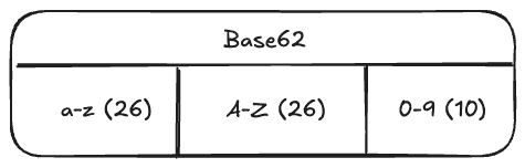 Short URL에는 Base62 인코딩을 적용하는데, 다음의 문자들로 구성된다.